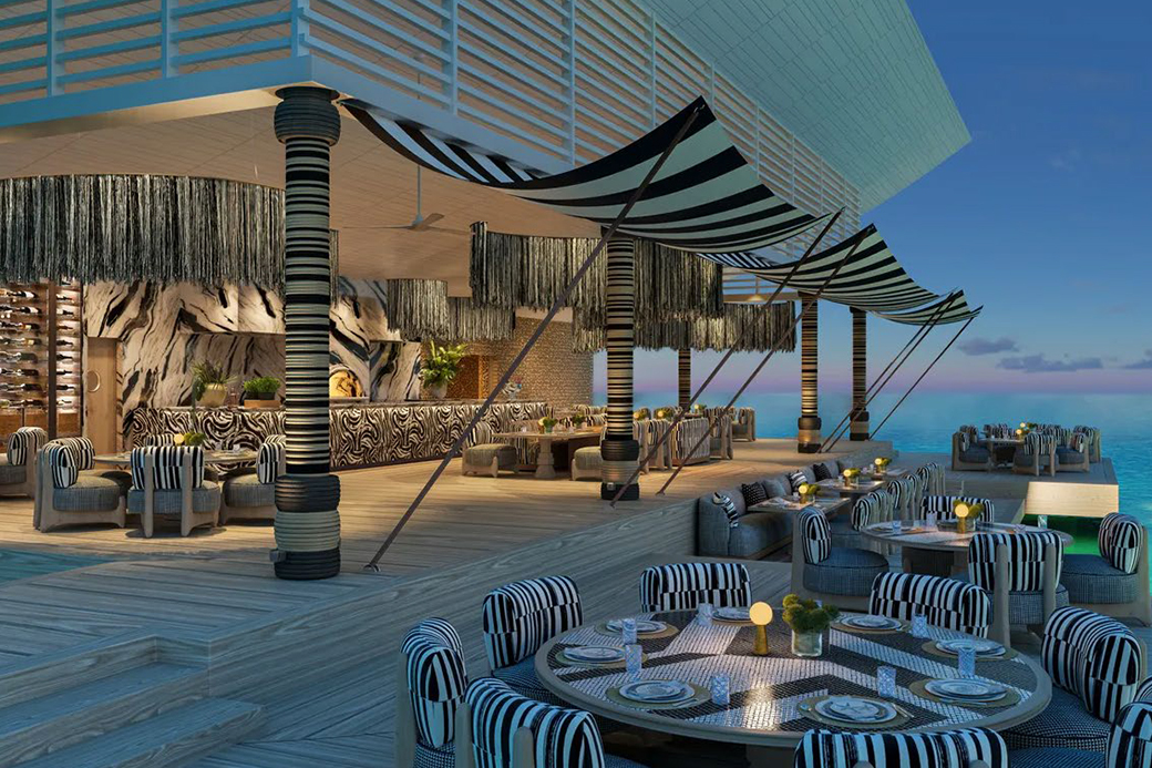 A masterpiece of design, inspired by the traditional attire of Bodu Beru dancers and extending out to sea. It offers contemporary dining experiences, surrounded by endless horizons.