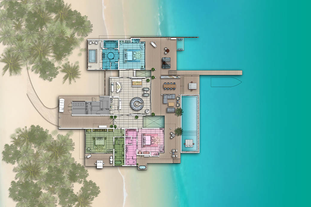 - Each residence has its own private arrival jetty